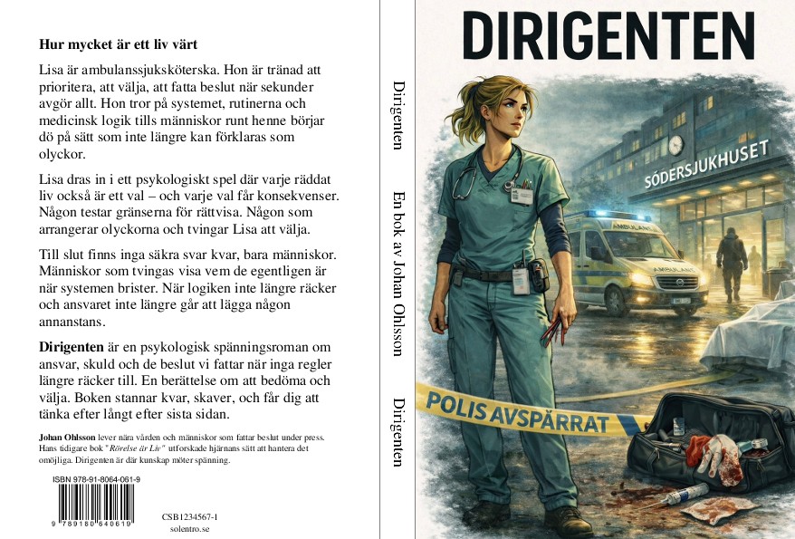 Hur mycket är ett liv värt – och vem har rätt att avgöra det? Lisa är ambulanssjuksköterska och van att fatta beslut när sekunder avgör allt. Hon litar på system, rutiner och medicinsk logik. Tills människor runt henne börjar dö på sätt som inte längre kan förklaras som olyckor. Snart växer ett mönster fram. Någon styr. Någon testar gränserna för rättvisa. Lisa dras in i ett psykologiskt spel där varje räddat liv blir ett val – och varje val får konsekvenser. Ju längre hon går, desto tydligare blir det: det finns inga enkla svar. Bara människor. Dirigenten är en psykologisk spänningsroman om ansvar, skuld och de beslut vi tvingas fatta när inga regler längre räcker till. En intensiv berättelse som kombinerar spänning med existentiella frågor – och som stannar kvar långt efter sista sidan.