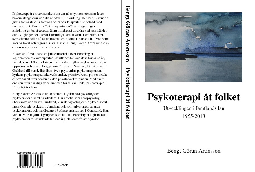 Psykoterapi är en verksamhet som det talas tyst om och som lever bakom stängd dörr och det är oftast i sin ordning. Den bedrivs under givna formaliteter, i förtrolig form och terapeuten är belagd med tystnadsplikt. Den som ”går i psykoterapi” har i regel ingen anledning att berätta detta, ännu mindre att torgföra vad som händer där. De gånger det sker är i förtroliga samtal vänner emellan. Den syns då inte heller så ofta i media och litteratur, särskilt inte vad som sker på lokal och regional nivå. Där vill Bengt Göran Aronsson täcka en kunskapslucka med denna bok. Boken är i första hand en jubileumsskrift över Föreningen legitimerade psykoterapeuter i Jämtlands län och dess första 25 år, men den innehåller också en historik över själva psykoterapin: dess uppkomst och utveckling genom Europa till Sverige, från Antikens Grekland till nutid. Här finns även psykiatrins psykoterapienhet, kyrkans psykoterapeutiska verksamhet, primärvårdens psykosociala enheter samt huvuddelen av den privata verksamheten. Med andra ord den huvudsakliga verksamheten för vuxna under psykoterapins första 60 år i länet.
