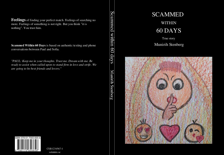 PAUL: I never get tired of listening to your messages. I love when you are talking, smiling, laughing, and I wish I could share everything with you. All sad and joyful moments, your ups and downs, every single moment of your day. Share. I am here. Be free to express yourself. SOFIA: You are an interesting man Paul. Your voice has left a deep impact on me. PAUL: Keep me in your thoughts. Trust me. Dream with me. Be ready to assist when called upon to stand firm in love and strife. We are going to be best friends and lovers. At a very tender age, my folks indoctrinated a positive attitude to life with honesty and good will. I have always been a one-man one-woman person. At the age of 46, I need to push myself to the limit. I want you to walk down the road together with me. We can make the world our oyster. You deserve to be happy and feel special every day, because you are special. ....................... Sofia gets in touch with Paul on Tinder, the perfect man in every way; responsive, loving, empathetic with very good finances. The contact between Sofia and Paul is intense. Sofia receives red flags from time to time but ignores them as "that's nothing", "Paul really exists", "He can not be a fraudster". He has "proved" to Sofia that he really exists; talked to him on the phone (though never facetime), texting, seen documents, photos. Sofia began to understand that something was not quite right, but realized, too late, that she had been deceived. ...................... I wrote this book because I wanted to read about authentic cases, how fraudsters think and manipulate their victims. For the fraudster, it's just a matter of taking as much as possible without conscience. The fraudster does not work alone. He has a team of professional groups behind him who have honed their knowledge and routines on how they can best deceive people. The victim is left with feelings of emptiness, shame, anger, bitterness and loneliness.
